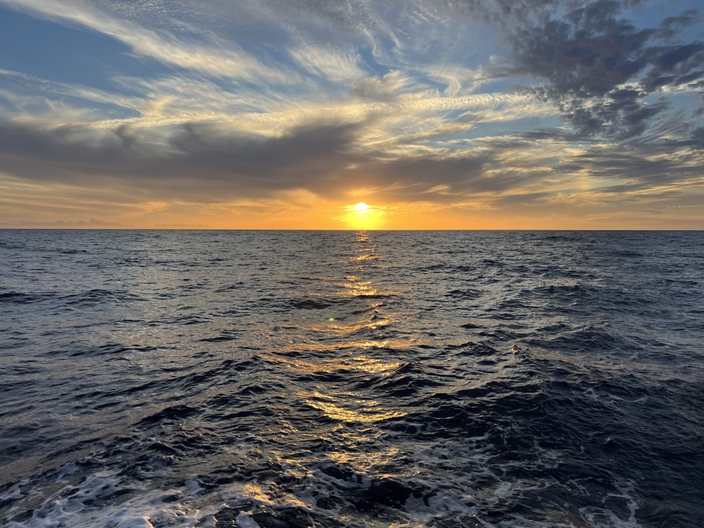 The leg to Bermuda started out with the expectation that we would sail direct from Hampton, VA to Antigua. We shoved off at around 1100 on 10/31/2024 and headed out the Chesapeake Bay. We hoisted sails and it felt magical. We were getting accustomed to the boat and Astra was doing the same with us. It was relatively warm and we felt as ready as ever to make the crossing.