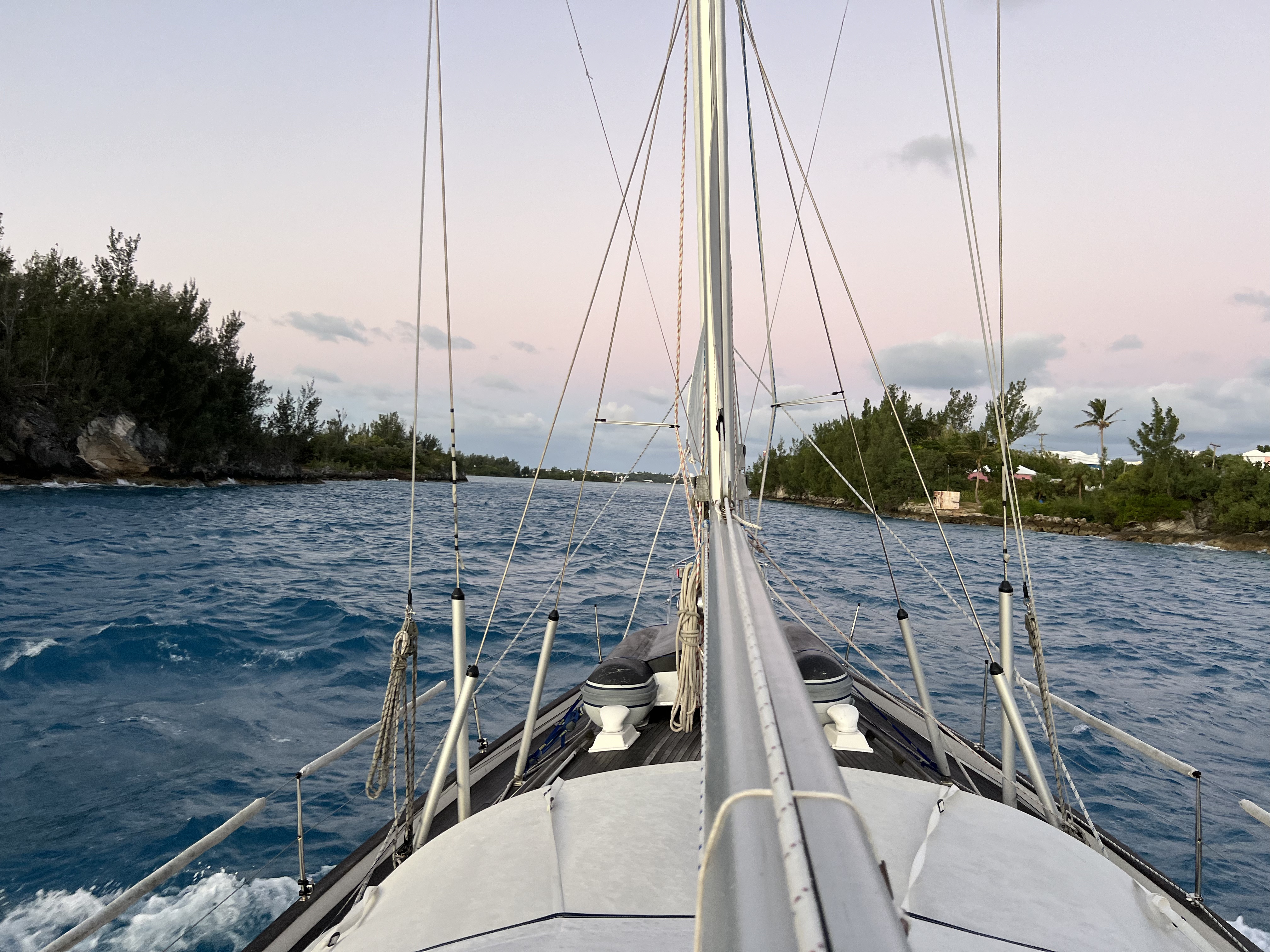 We departed on Wednesday, and lucky we did! Later in the trip, we learned that those that took more time in Bermuda and left 1, 2 or 3 days after us really hit a mess on the ocean. Before we could rip out the sails, we were asked by the harbourmaster to stall in the St. George’s channel to allow a cruise ship to pass. We were feeling like a race car lining up at the 1/4 mile strip waiting for the Christmas light tree to go green.