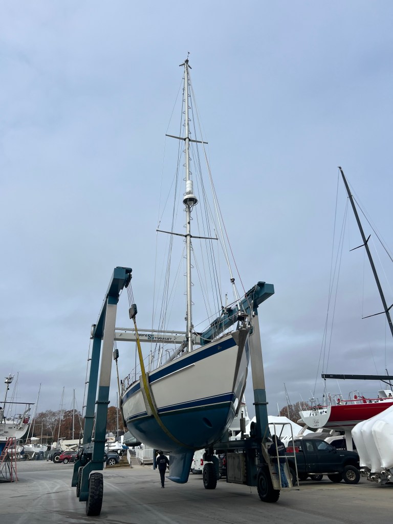 We were very happy that the crew used our new lift stickers to position the sling and that it worked very well. Surprisingly, the Garmin Panoptix PS51-TH sonar sensor came out very dirty. I cannot remember if I painted it before I installed it, but I am pretty sure that I used sensor paint. I will have to sort that out in the Spring before we launch.