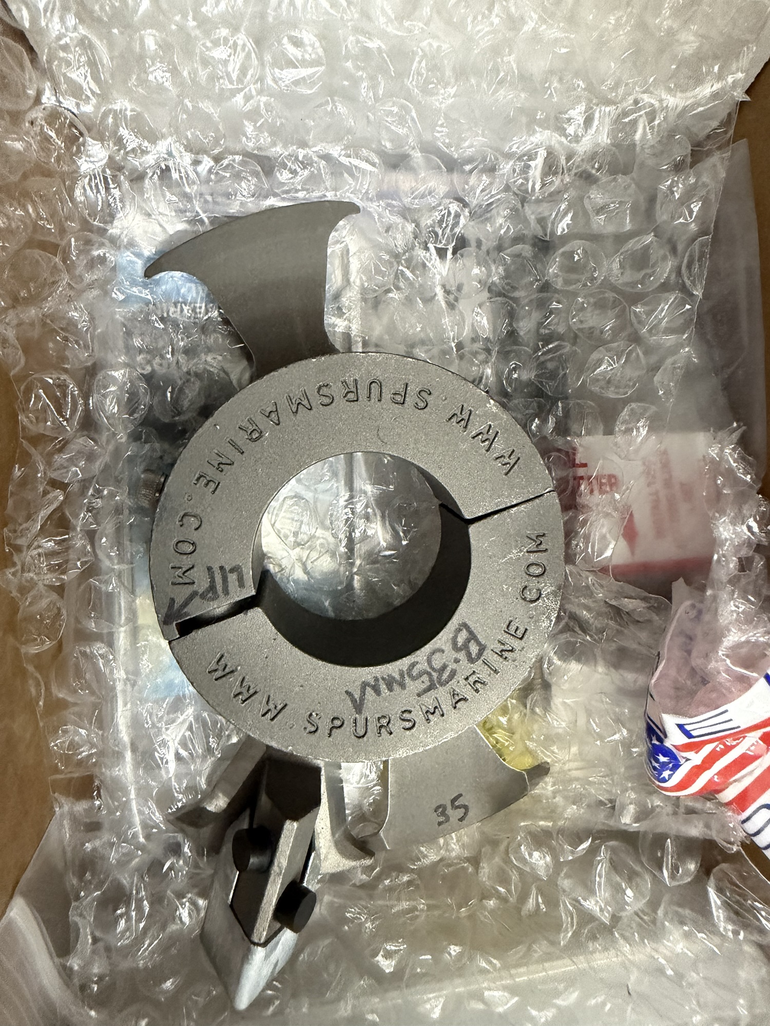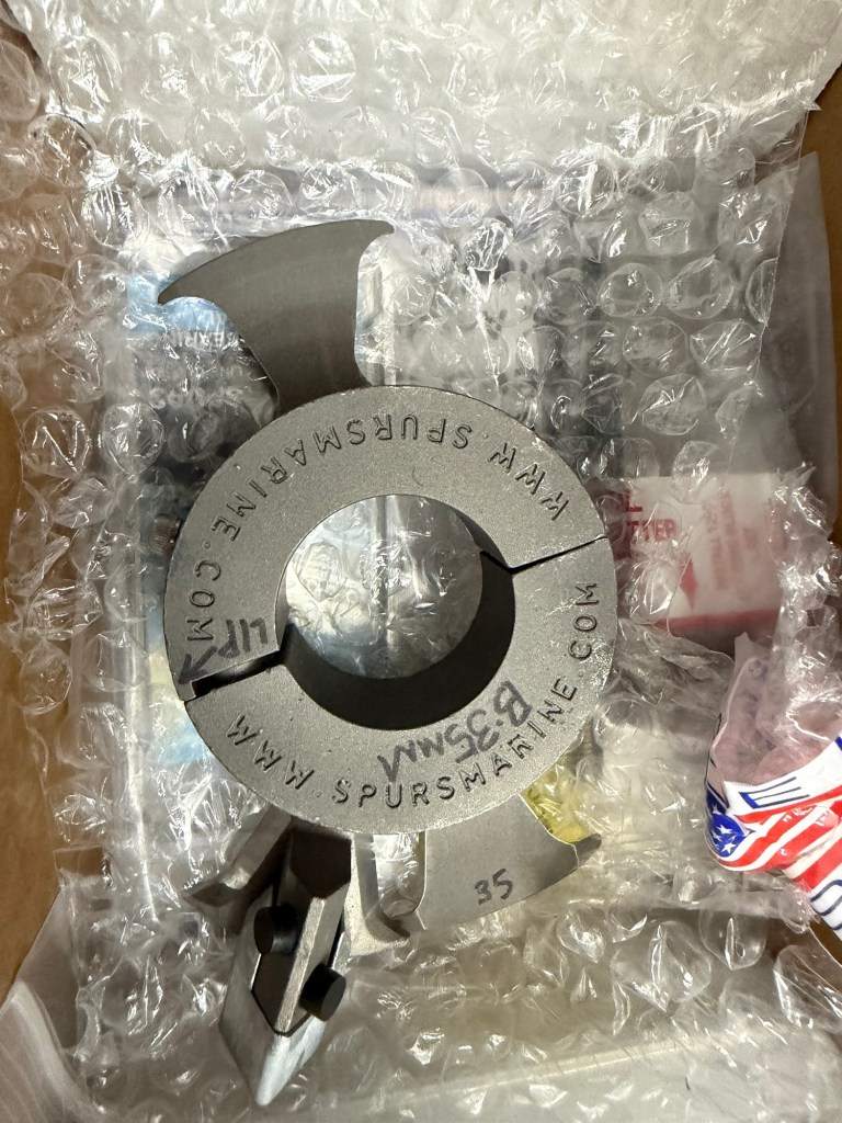 Spurs responded the next day with a couple of additional questions. Within a day I received a quote, I placed the order, and the package arrived quickly -overall about 1 week from inquiry to receiving the cutter. Spurs specified a Cutter Assembly B (for my 35mm shaft) and Holding Block 2A. I also ordered a spares kit for a total around $700 with shipping. In the box was a pre-assembled rotary and fixed blade as well as the holding block to be secured to the bronze bearing housing. All parts were very high quality and packaged well.